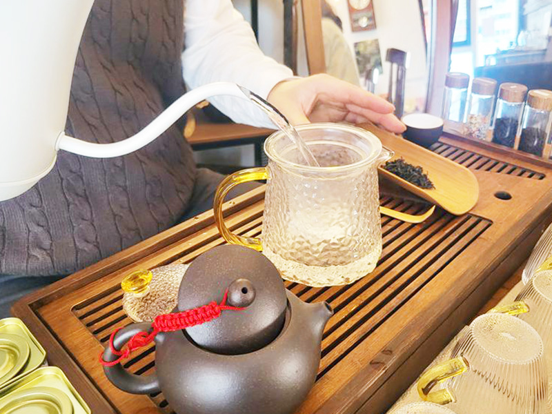 丁寧に淹れられたお茶ならではの、澄んだ風味が口の中にやさしく広がります。3煎まで淹れてもらえるので、香りの変化を楽しめます。