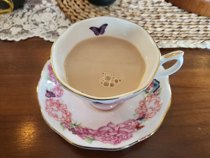 次に提供されるのは紅茶。好きなカップを選ぶことができ、今回はロイヤルコペンハーゲンの華やかなカップでいただきました。