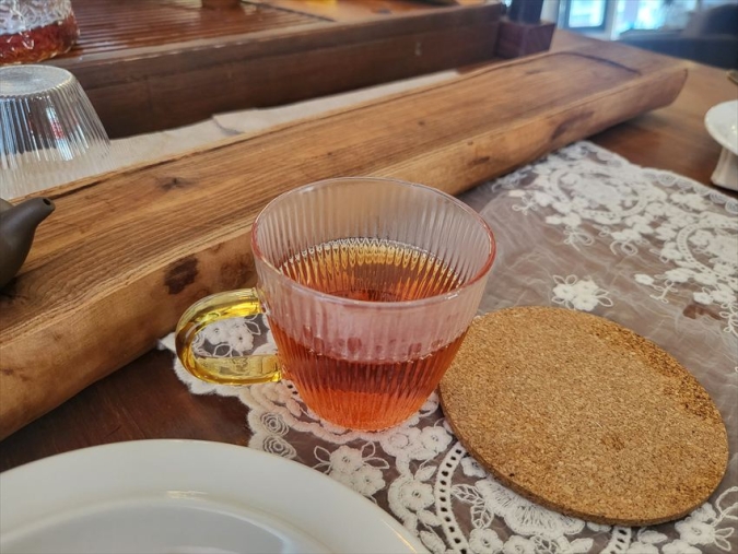 紅茶というとイギリスやスリランカが頭に浮かぶ人も多いでしょうが、こちらの紅茶は韓国産の緑茶を発酵させて作った、手作り。渋みと香りのバランスがよく、自然のままの茶葉の力強さが感じられる一杯です。