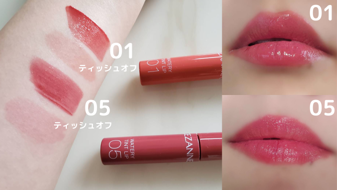 今回使用したのは、01(ナチュラルピンク)と05(プラムレッド)の2色。