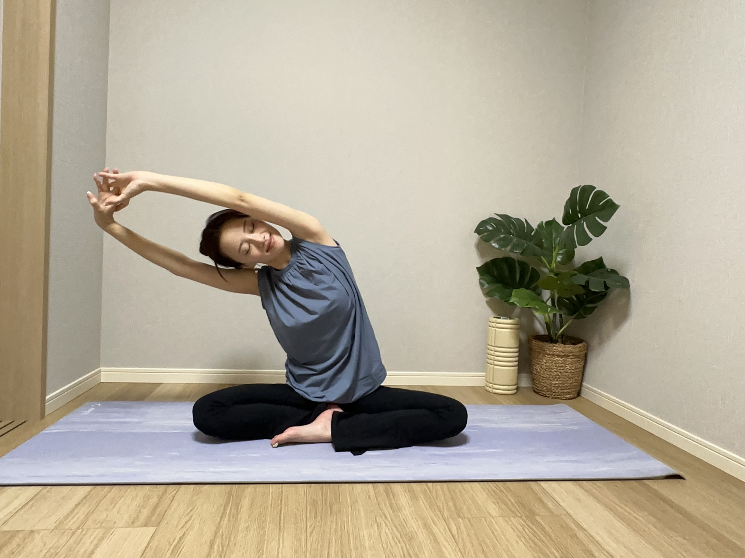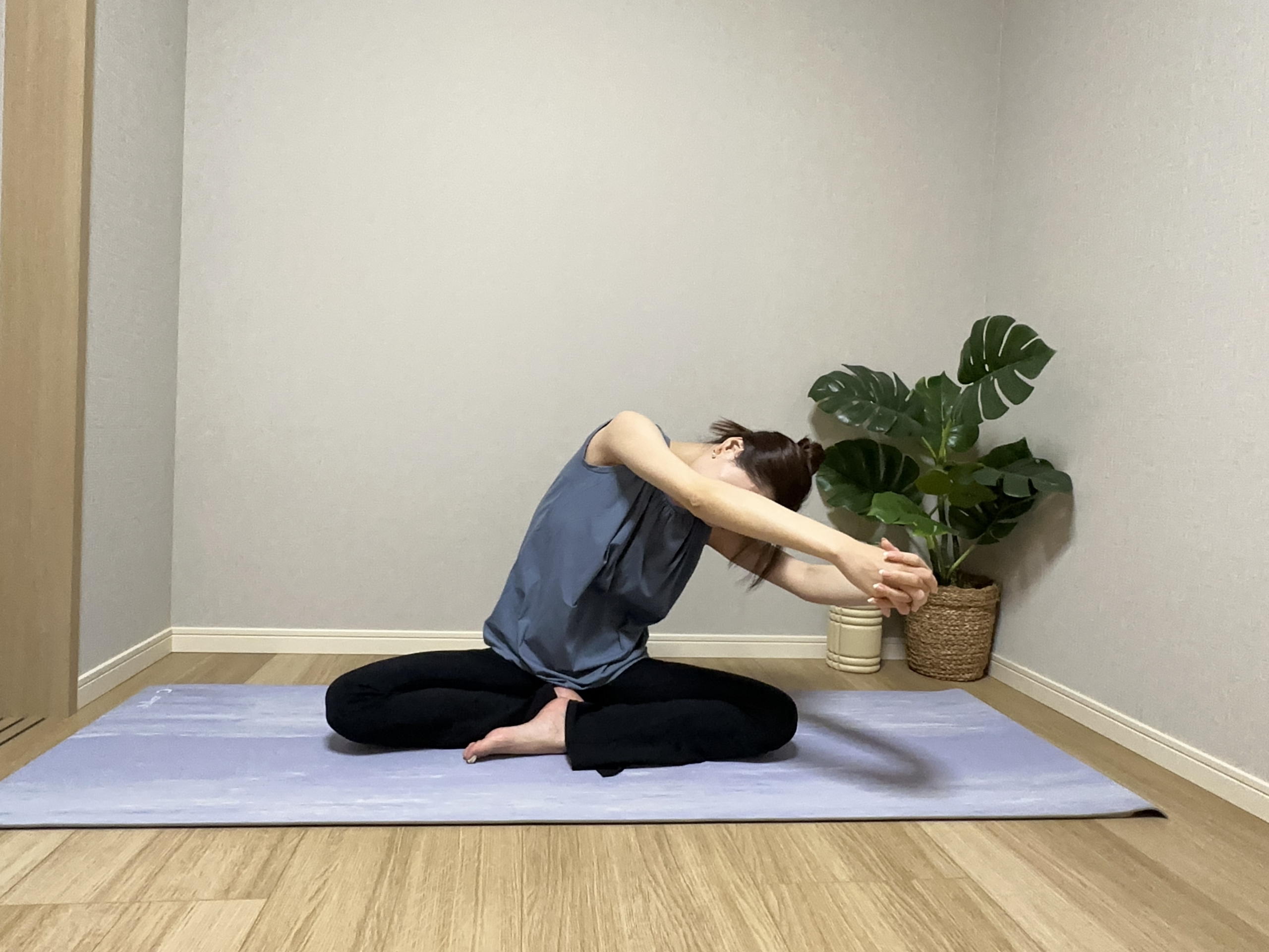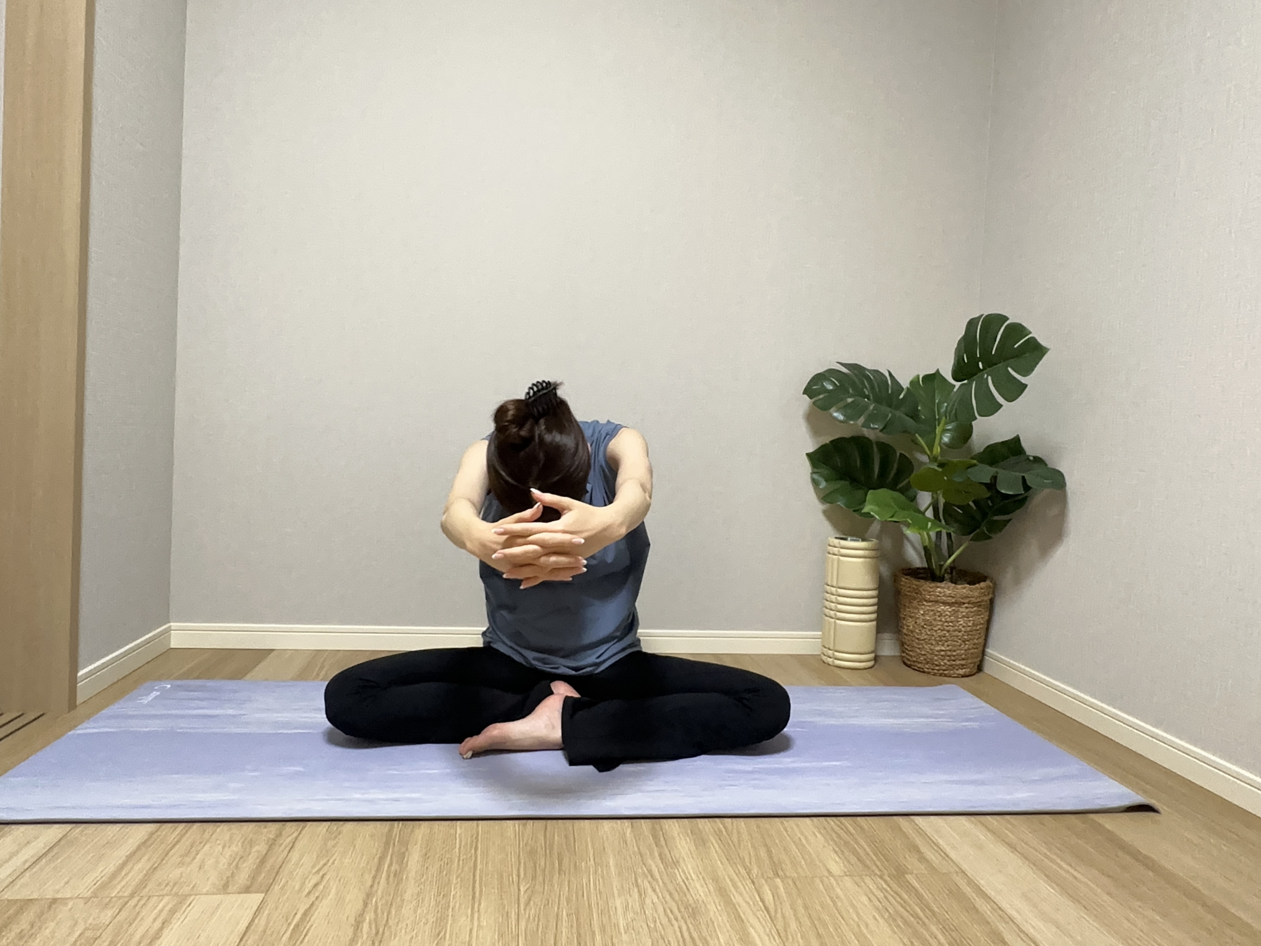 特に伸びを感じる場所でゆっくり深呼吸をしながら、背中周りを心地よく伸ばしてください。