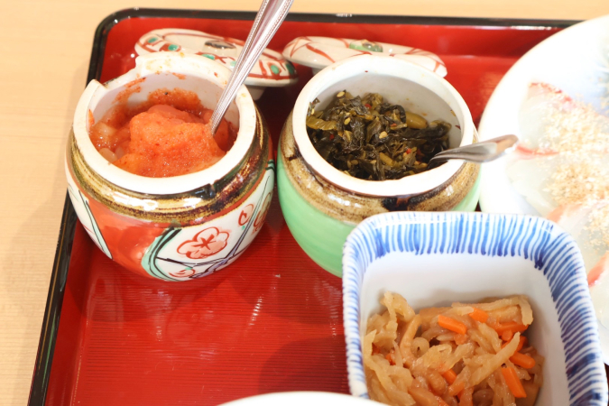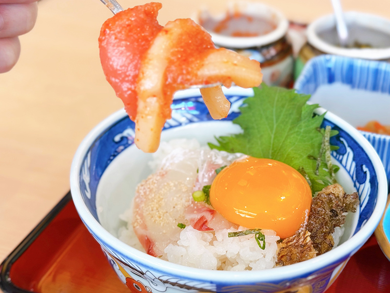 What's more, if you order a set meal, rice bowl, or set, you can enjoy an all-you-can-eat service for "Squid and Mentaiko" and "Takana." This is great!