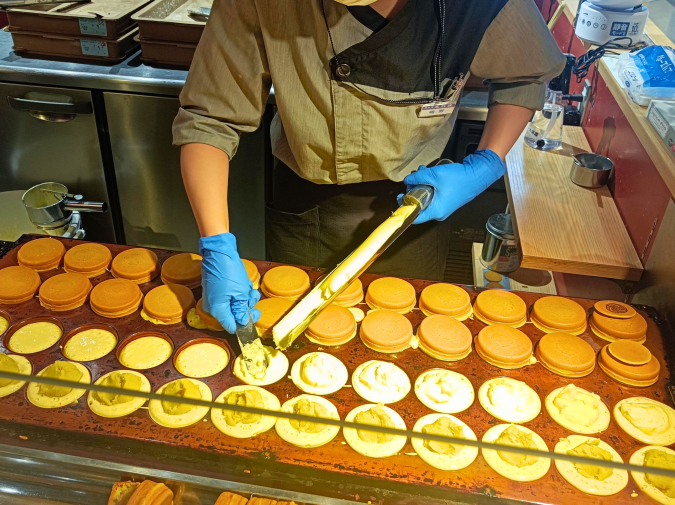 When I visited, I was able to see them making it right in front of me. I was surprised at the amount of filling they put inside!