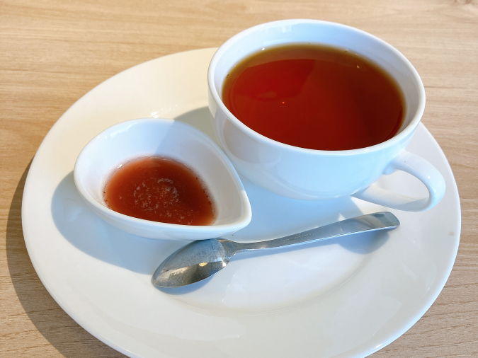 "Strawberry Tea" (400 yen) is a set of straight tea and strawberry jam.