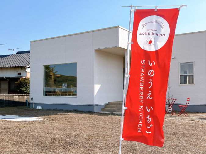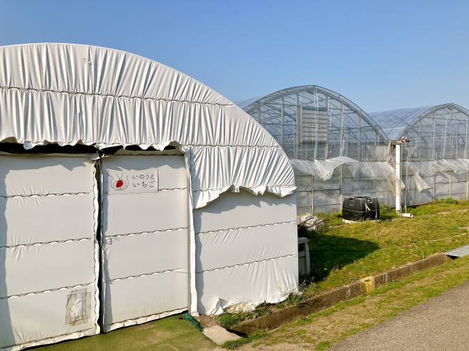Inoue Strawberry / Strawberry Kitchen is located in a tranquil area surrounded by fields, about 10 minutes by car from the Yukuhashi Interchange on the Higashi Kyushu Expressway.