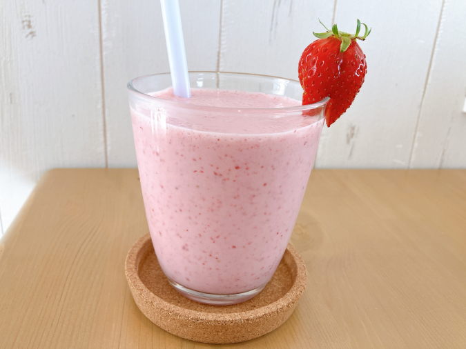 "Strawberry Milk Smoothie" (650 yen) made with plenty of strawberries.