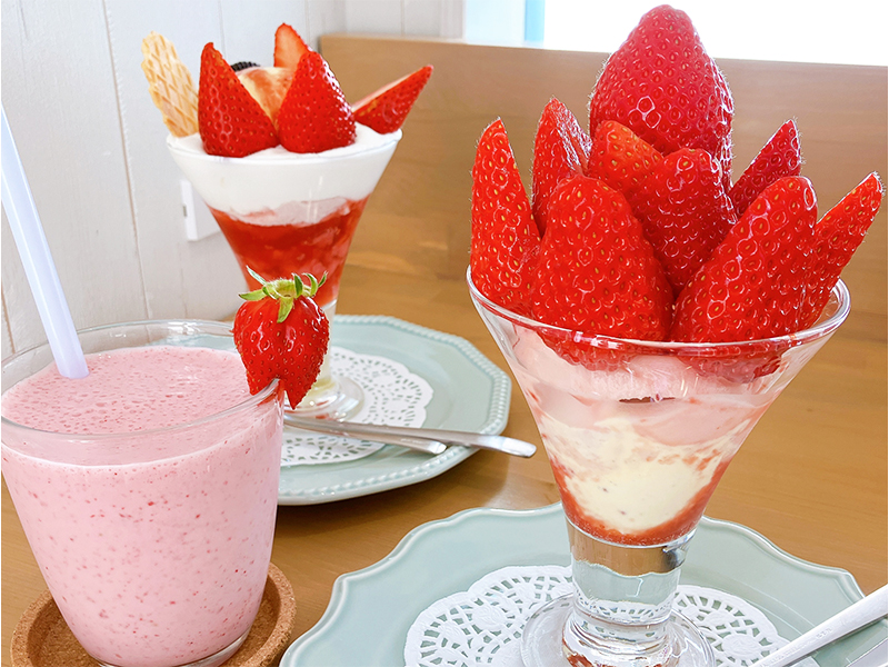 You can also pick strawberries by weight! Inoue Ichigo/Strawberry Kitchen (Miyako-cho, Kyoto-gun) is a cafe where you can enjoy seasonal strawberry sweets.