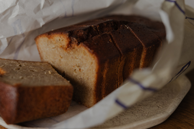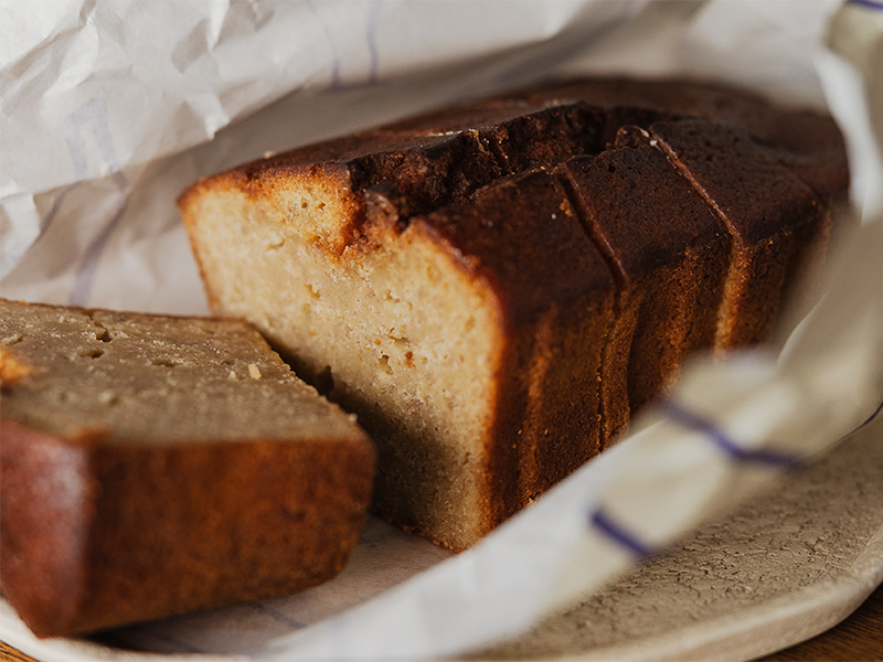 A reservation is required for the whole banana bread, but you can enjoy slices at the cafe.