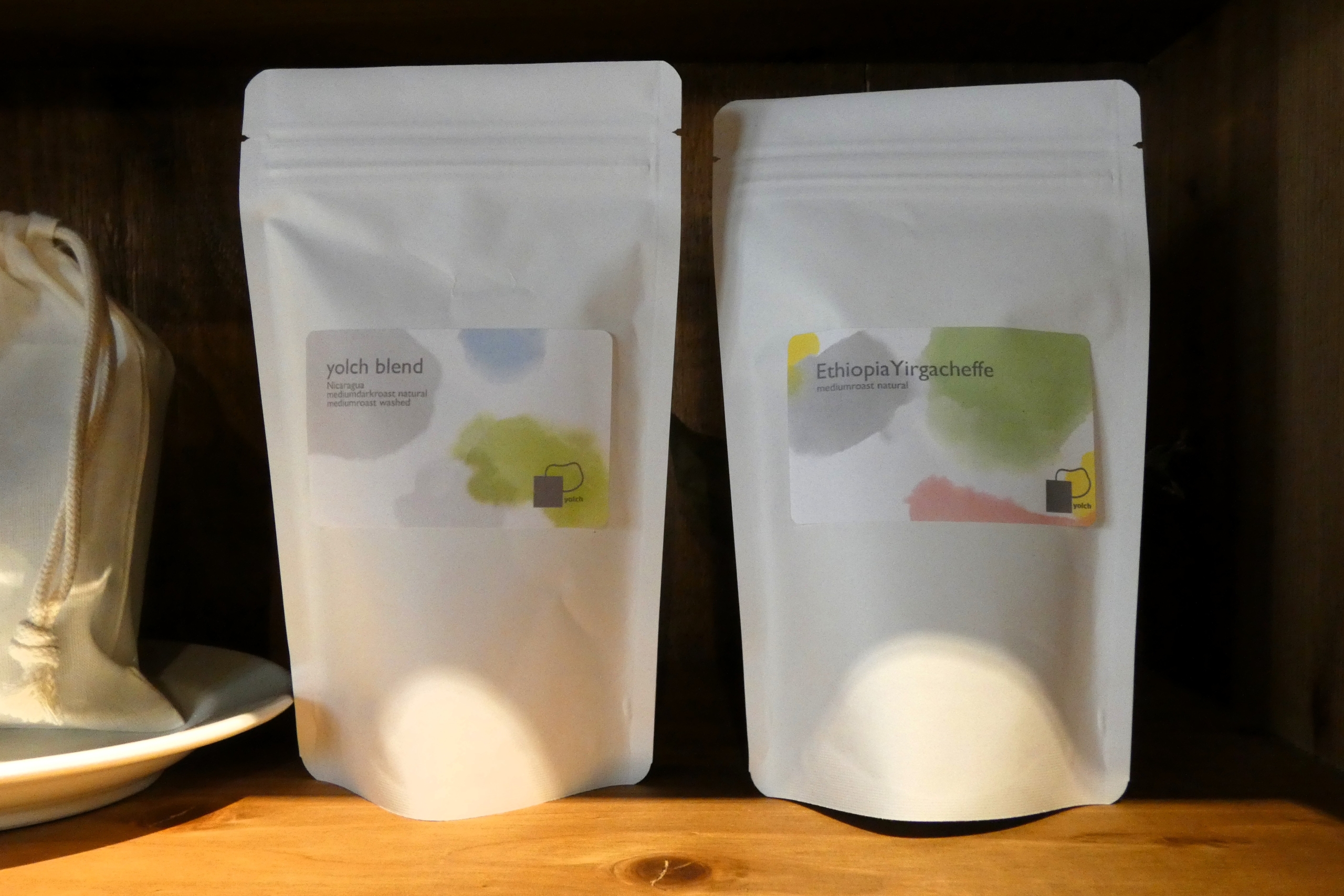 店内では、オリジナルブレンドのコーヒー豆(100g/1,200円~)や、普段使いしやすいシンプルなデザインの『yolchオリジナルTシャツ』(3,000円)、『塩チョコクッキー』(300円)『フィナンシェ』(320円)などの焼き菓子の販売もあります。