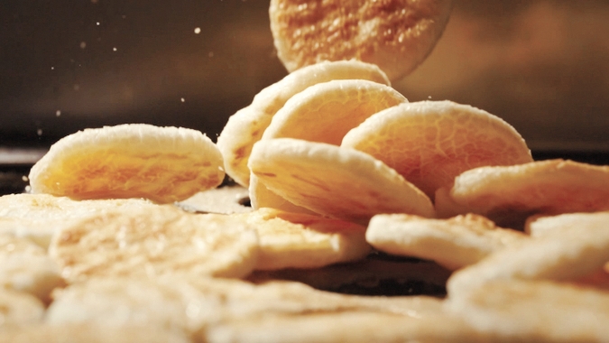 新商品『できたて煎餅』(250円)は、工場直送のあられ・おせんべいをその場で袋詰め。できたてのおいしさは、直売所でしか味わえませんよ。