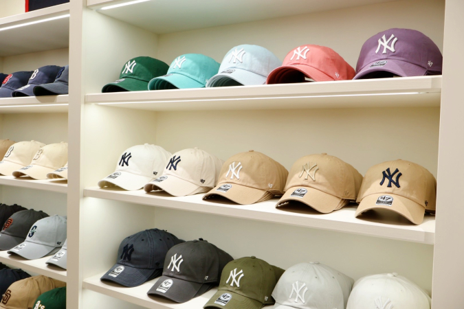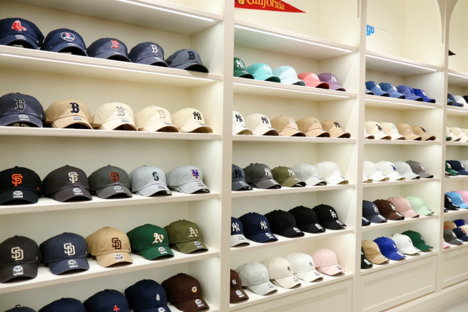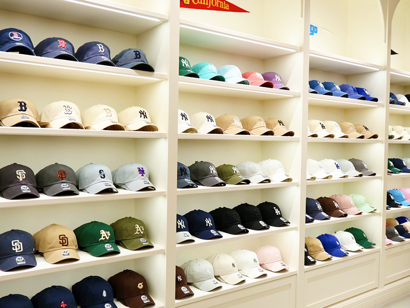 店内には、MLB(メジャーリーグ・ベースボール)公認のカジュアルキャップブランド『’47(フォーティーセブン)』を中心に、アメリカンな雑貨やグッズがずらりと並んでいます。