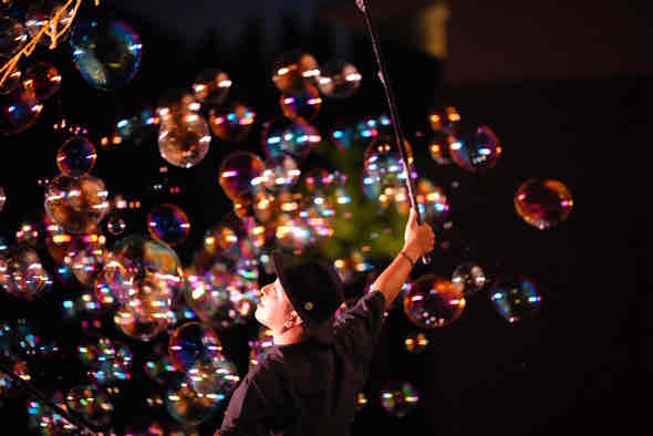 夜時間も満喫!光とシャボン玉の「ナイトバブル」