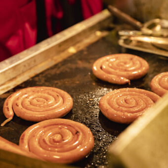 会場内のヒュッテ(小屋)では、定番のホットワインやホットチョコレートはもちろん、ぐるぐるソーセージやチキン、スープなど、寒い冬にぴったりの温かいメニューを販売。3回目の開催となる今年は、昨年からさらに増え、全18店舗が並びますよ。