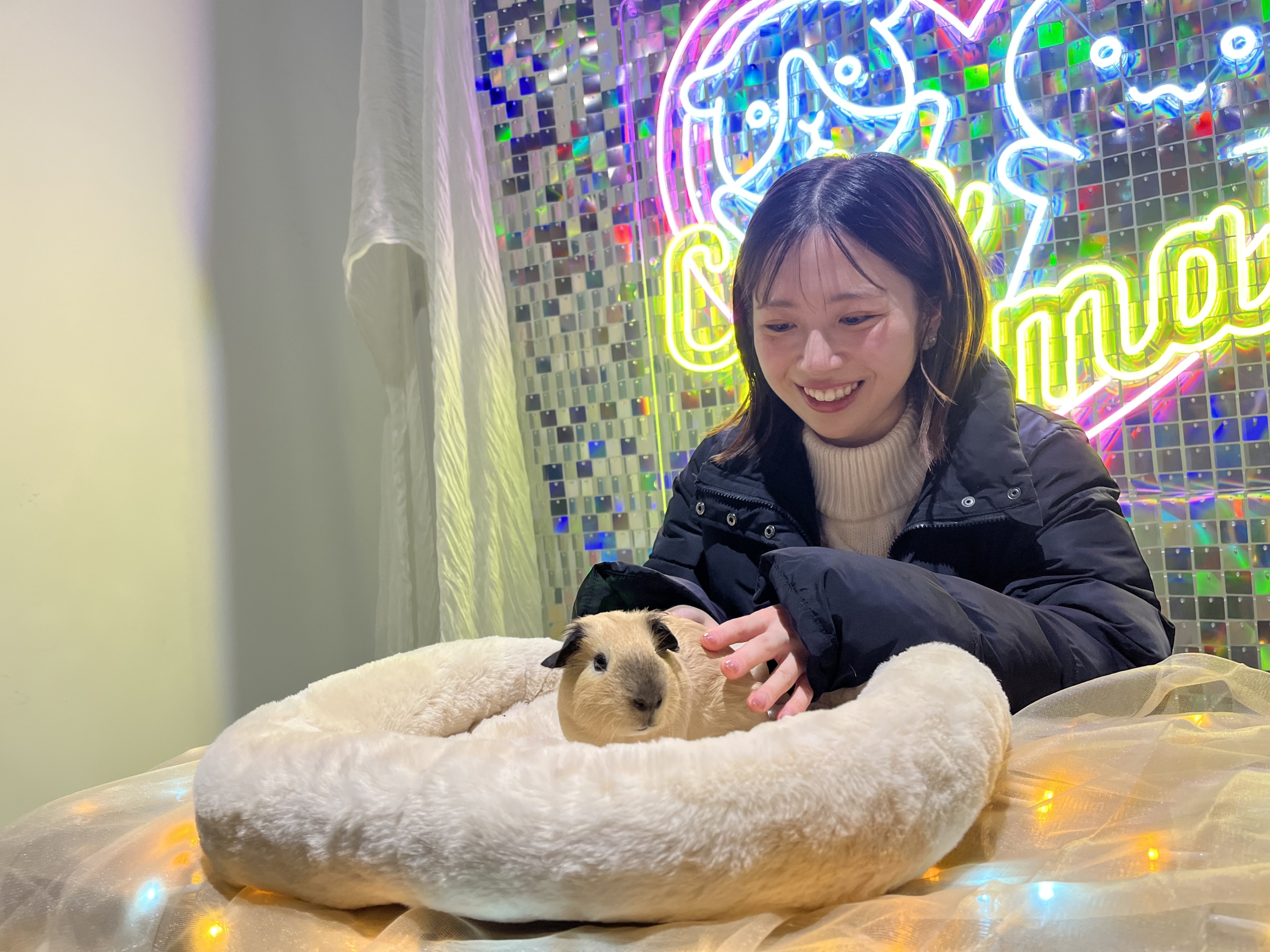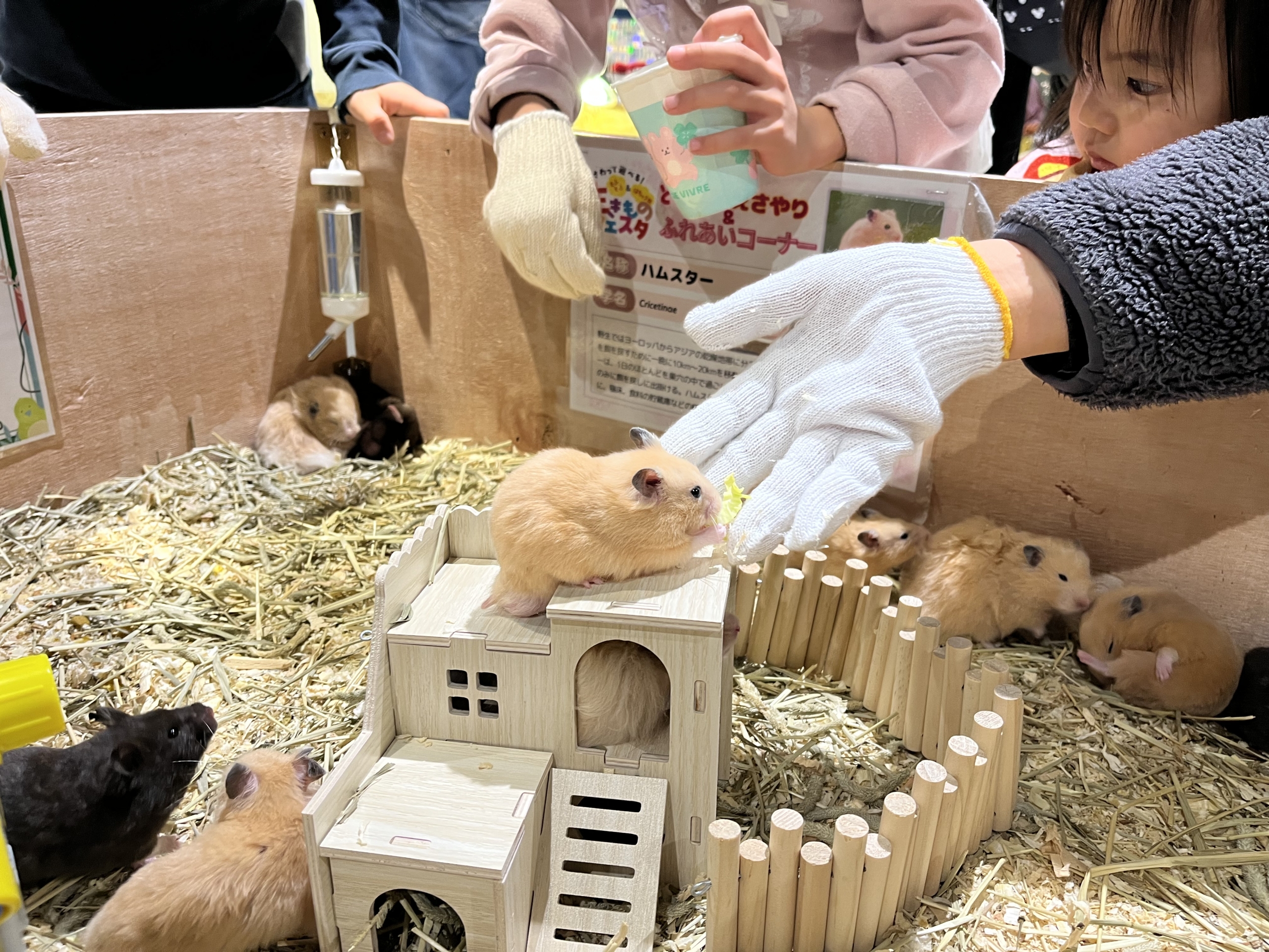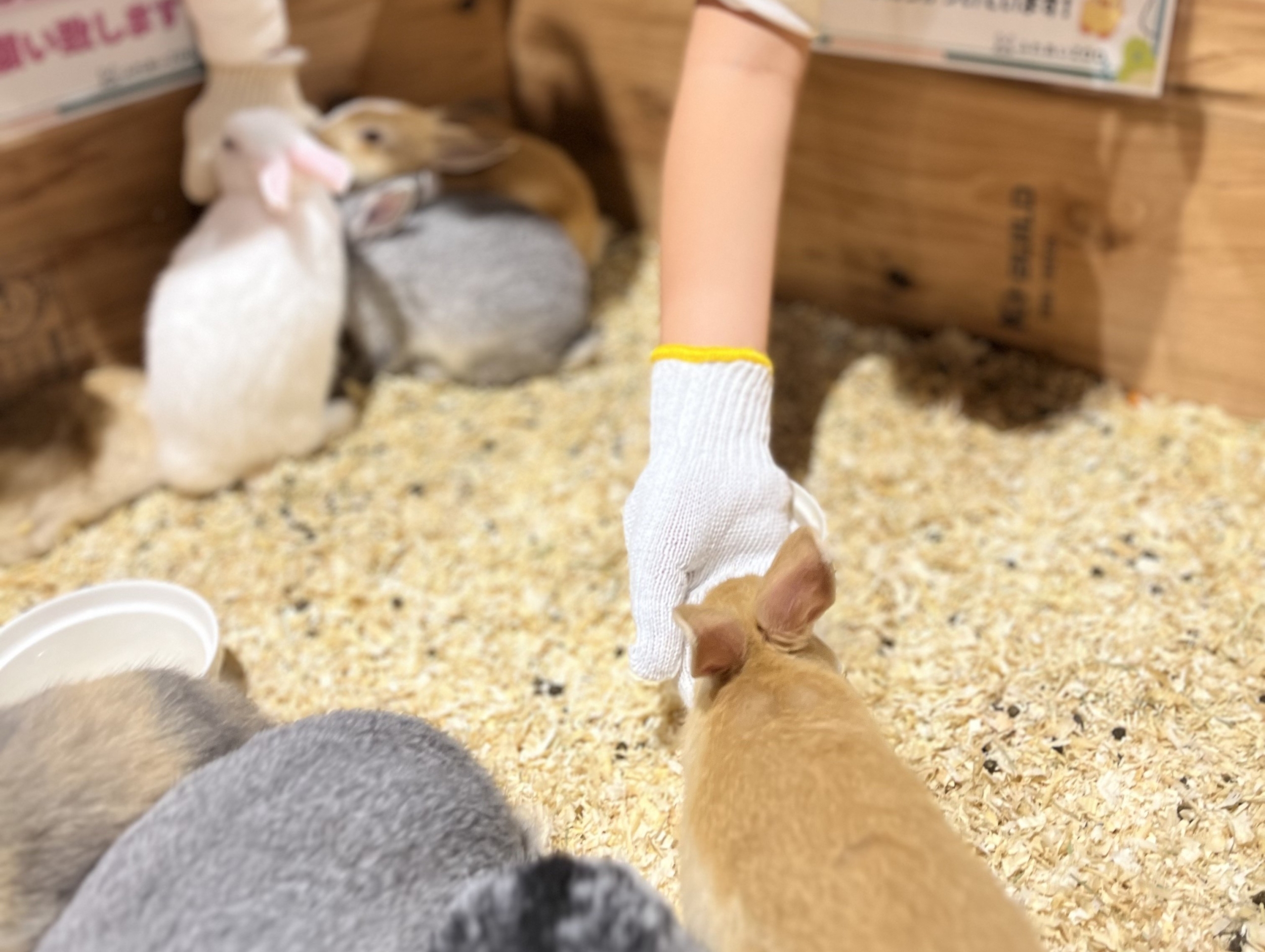 もふもふゾーンでは、かわいい小動物たちがお出迎え。ふれあい体験もできます。