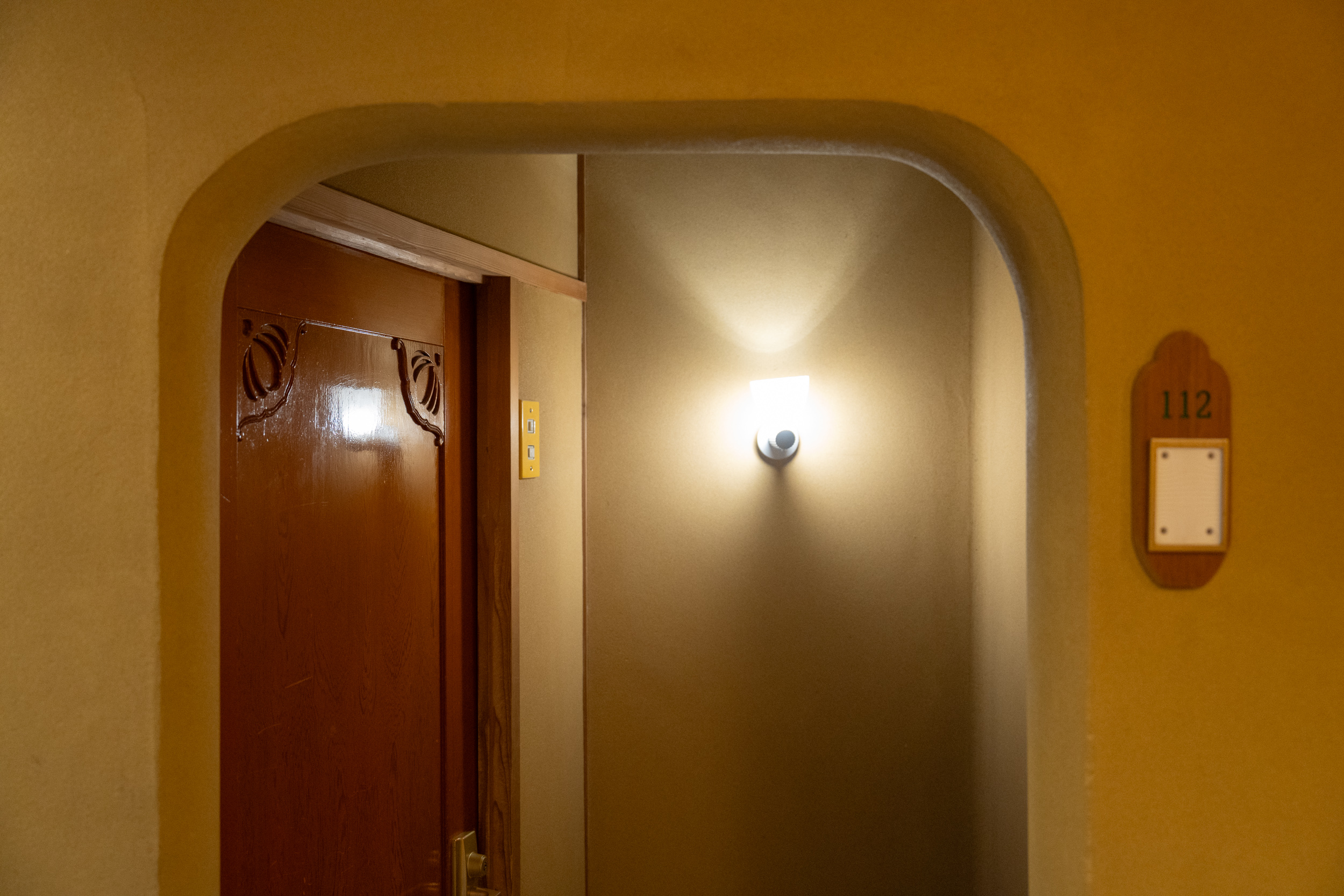 風合い豊かな土壁、手の込んだ意匠の引き戸、替えの利かない格子のガラス戸。建具の一つひとつがオーダーメイドで、ほとんどが建築当時のまま。機械では生み出せない、職人の手仕事に宿る温もり。扉には貝殻のようなモチーフが施されていて、部屋菓子の箱や館内のインテリアにも同じモチーフがあちこちに。滞在した人だけが気づくポイントかもしれません。