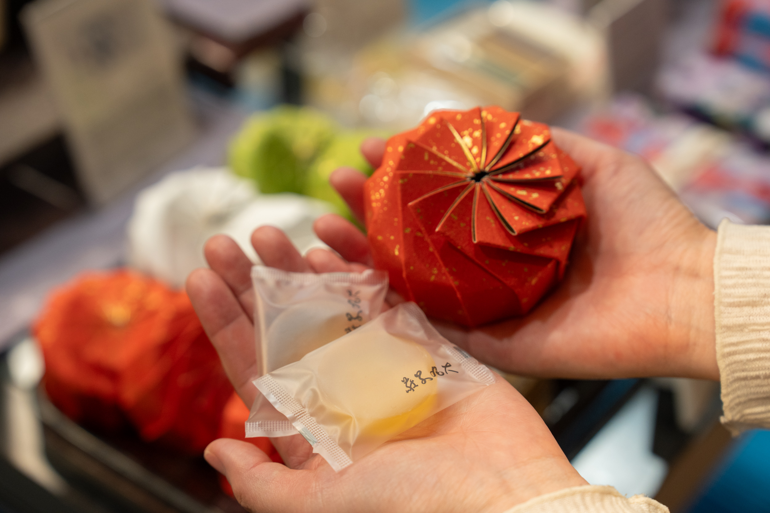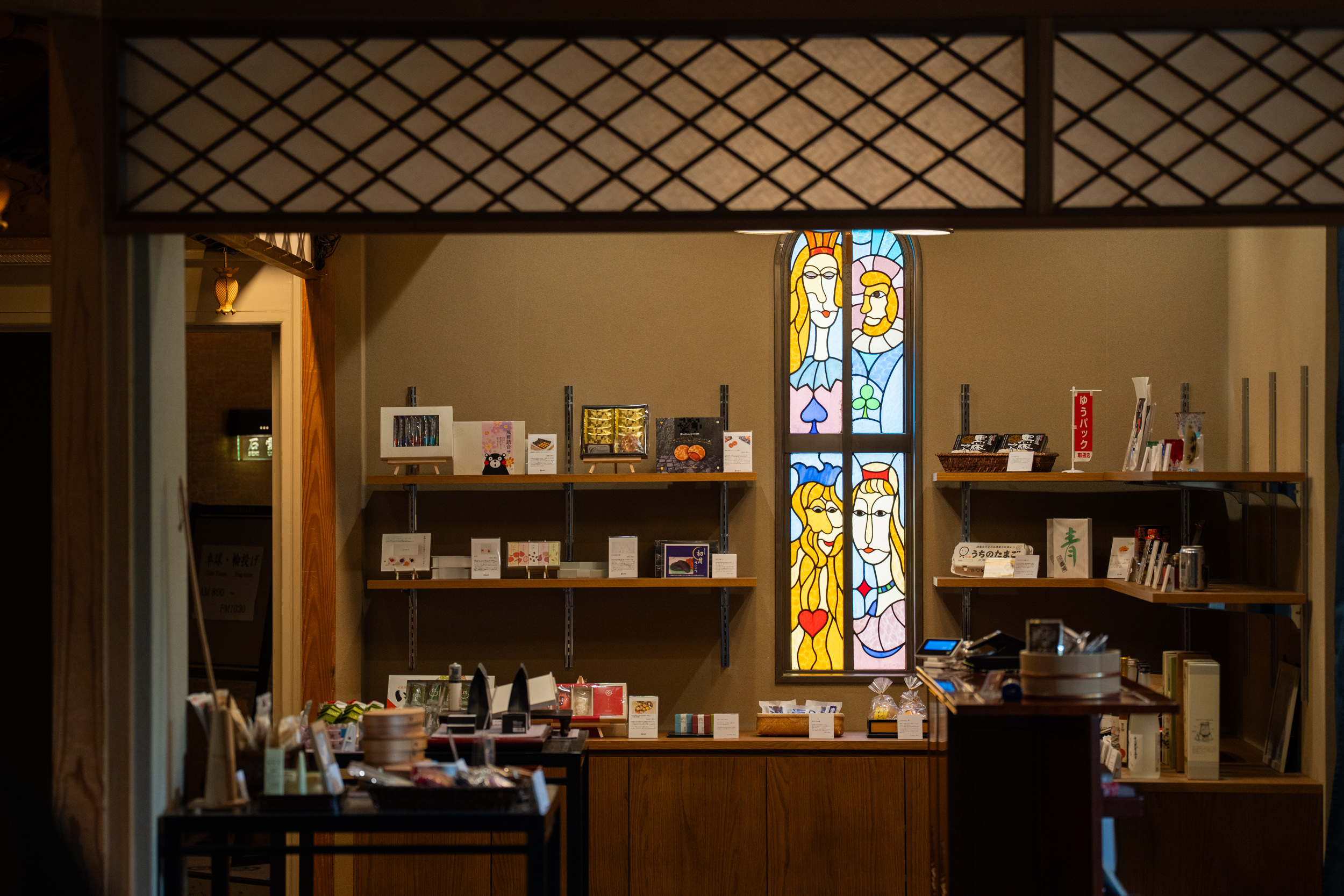 創業160周年を迎えた大丸別荘では、玄関の博多織の暖簾や、会席料理の刷新、アメニティの一新と、リニューアルが着々と進んでいます。ギフトショップも新たに装いを変え、リピーターに評判のオリジナル石鹸をはじめ、客室のアメニティ、食事で味わった『うちのたまご』、博多曲げわっぱや大川組子といった福岡の伝統工芸品も販売。宿泊の余韻を自宅に持ち帰れるのがうれしいポイントです。