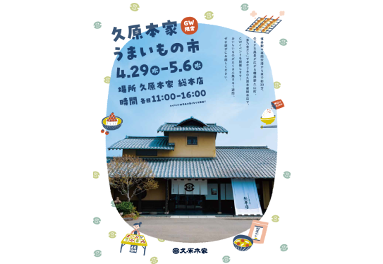 2026年4月29日(水・祝)~5月6日(水・振休)11:00~16:00、その『久原本家 総本店』で『久原本家 うまいもの市』が開催されます。