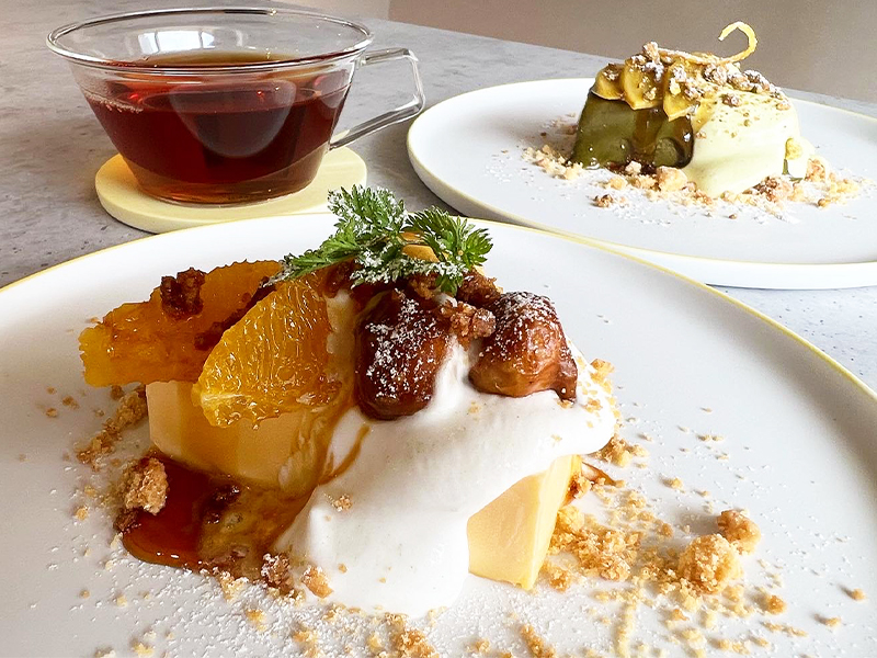 『太宰府産卵のプレーンカタラーナ』には、有機栽培の『南薩摩紅茶』がおすすめ。春摘みらしい爽やかさと深みのある味わいが、カタラーナとよく合います。