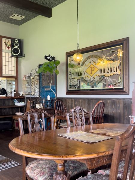 店内はアンティーク家具をはじめ、レトロな照明や家具、小物が使われています。