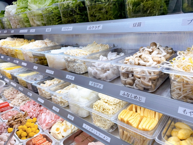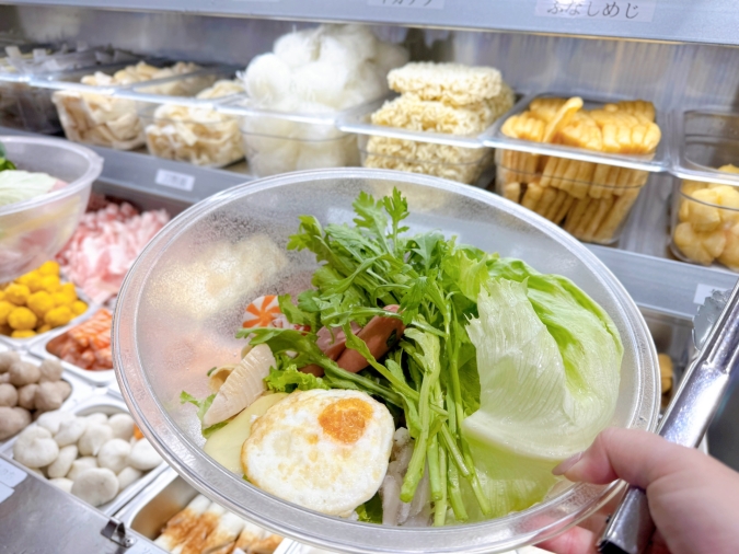 麺や野菜、肉、魚介、練り物、きのこ類など60種類以上の具材から好きなものを選び、100gあたり400円で会計されるシステムです。