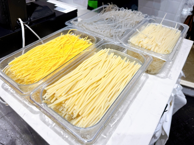 麺は刀削麺、こめせん、とうもろこし麺、さつまいも春雨、ぎゅうすじ麺、インスタントラーメンの6種。