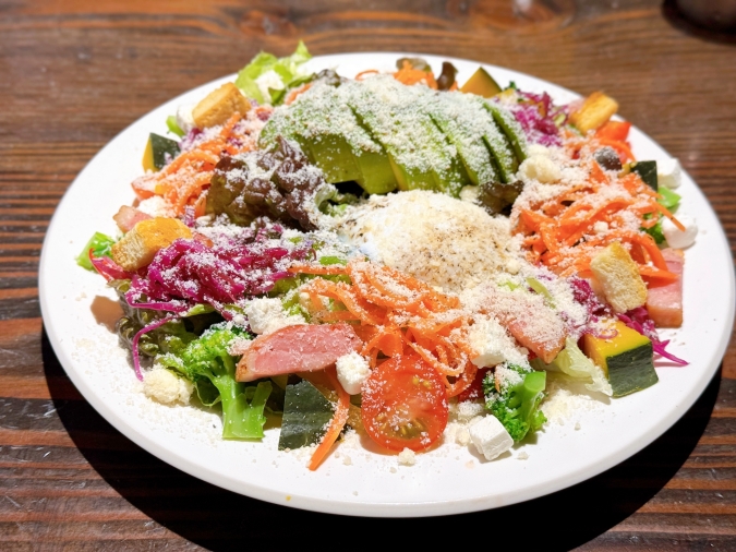 こちらは彩りも鮮やかな『金太郎卵を使用したアボカドシーザーサラダ』(1,630円)です。お野菜のシャキシャキとした食感とアボカドのなめらかさを同時に味わえます。
