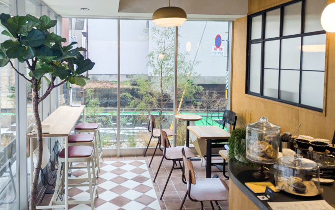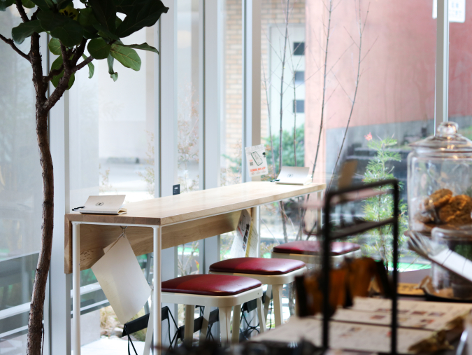 カウンター3席を含む全13席のこぢんまりとした店内ですが、ガラス張りのため自然光がたっぷりと差し込み、開放感もあります。