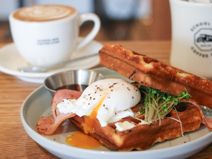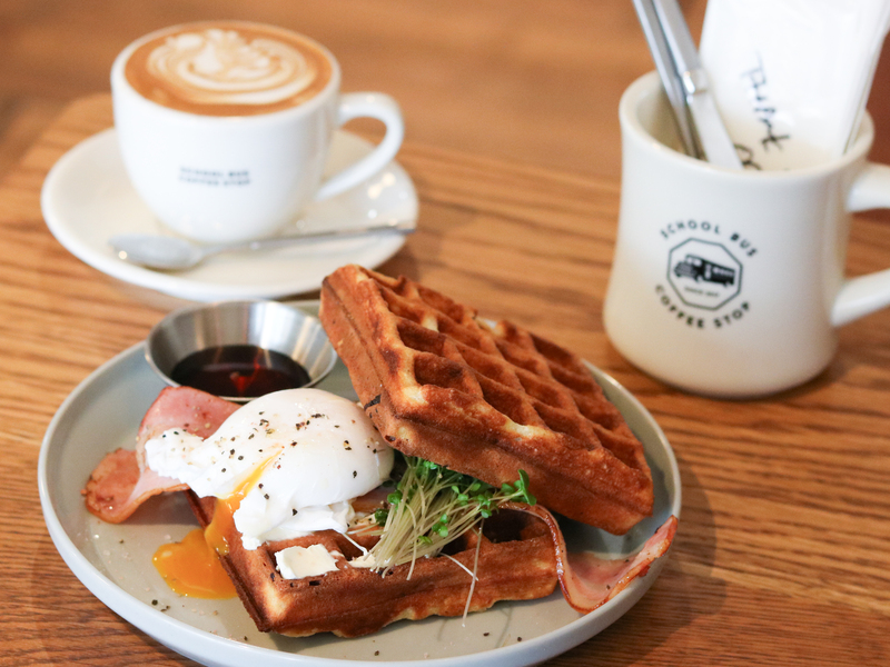 大濠公園から徒歩4分! 限定アメリカンワッフルが名物の「SCHOOL BUS COFFEE STOP FUKUOKA(スクールバス・コーヒー・ストップ・フクオカ)」(福岡市中央区今川)