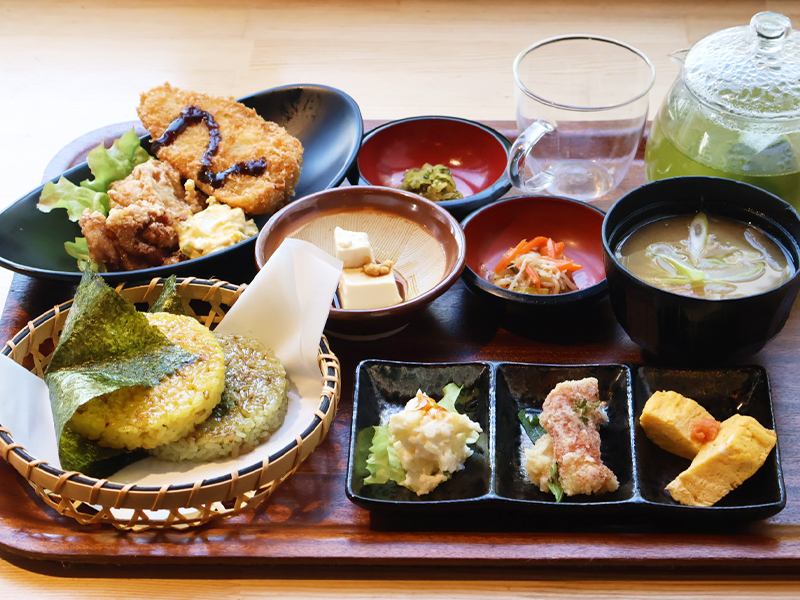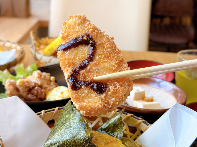 焼きおにぎりは表面が香ばしく、中はもっちり。アジフライはサクサク、黒酢チキン南蛮はジューシーでタルタルとの相性も抜群です!