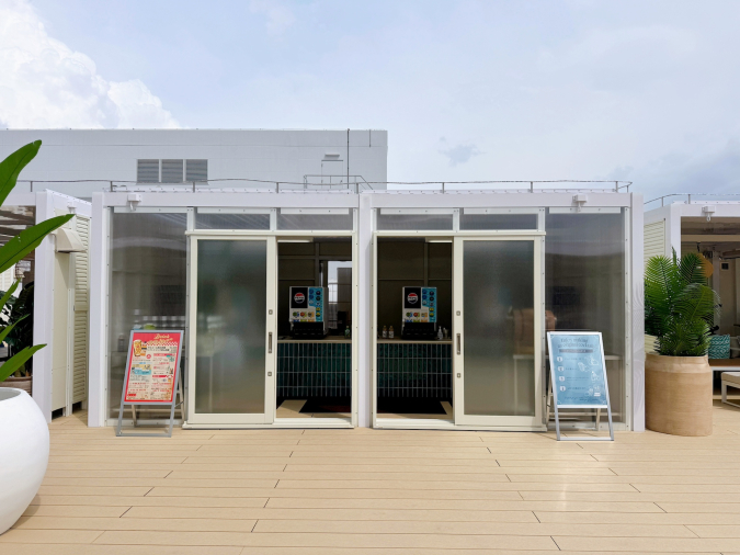 リゾート風のテーブルとチェアがずらりと並び、中央にはサボテンなどが飾られています。本当に博多駅のすぐそば!? と一瞬わからなくなるほど。