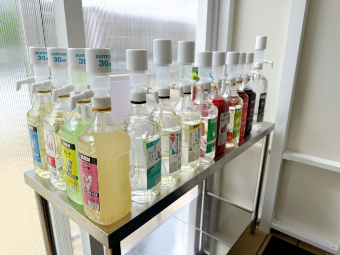 中央のエリアにはドリンクバーがあり、『ソフトドリンク飲み放題』(400円)や、『アルコール飲み放題』(1,600円)のプランがあります。持ち込みも可能ですが、氷や豊富なアルコールドリンクもあるのでドリンクバーをつけるのがおすすめです。