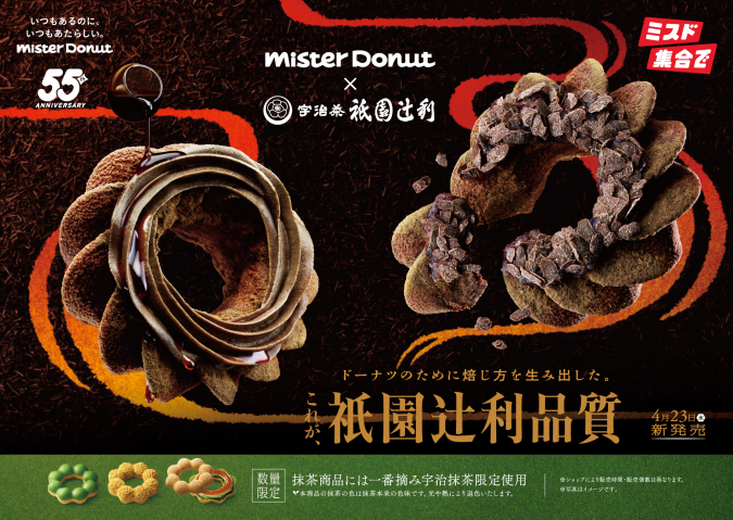 ミスド史上最大の抹茶量ドーナツも!毎回人気「祇園辻利コラボ」新作4月23日登場