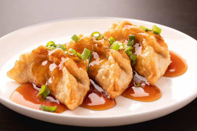 100年以上の歴史を持つ秘伝のレシピを復刻した『山水樓 八ヶ岳ぎょうざ』の『山水樓 八ヶ岳焼き餃子』に、人気料理対決番組にも出演した名物シェフが考案した、揚げ餃子に甘酢ソースを絡めた『山水樓 八ヶ岳揚げ餃子』(写真)も要チェック。