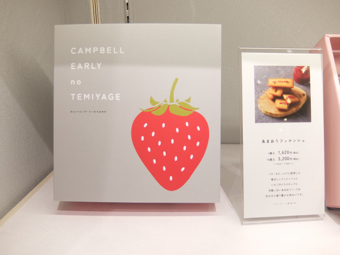 「あまおう」の甘みと、香ばしいバターの風味がたまらない『あまおうフィナンシェ』(1個270円、紙箱5個入り1,620円)。