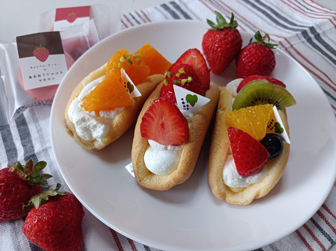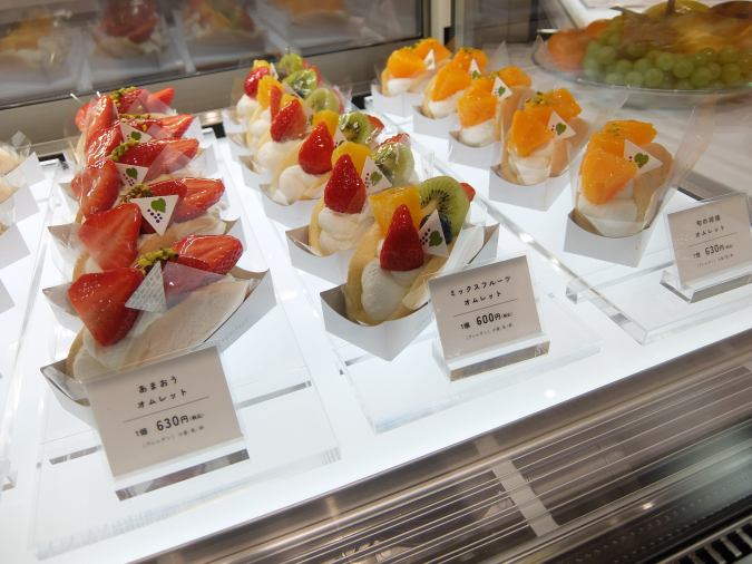 私が伺った日は、あまおうがふんだんにのった『あまおうオムレット』(1個630円)、あまおうなどのフルーツがのった『ミックスフルーツオムレット』(1個600円)、ビタミンカラーが目をひく『旬の柑橘オムレット』(1個630円)、