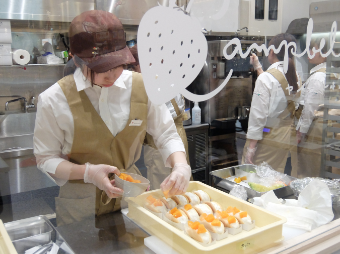 お店の奥には製造スペースが併設されていて、出来たてのオムレットが店頭に並びますよ。
