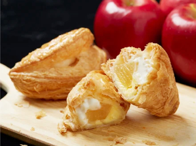 素材と製法にこだわった『世界一のアップルパイ(R)』。厳選した小麦粉とフランス産発酵バターを使ったサクサク食感のパイ生地に、ザクッとした歯触りが楽しめる大ぶりカットのリンゴと風味豊かな特製カスタードクリームをあわせ、最後に豆乳を乳酸菌で発酵させた豆乳チーズクリームを入れてあります。