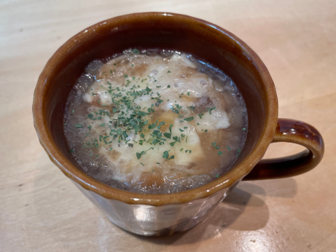 オニオンスープにはパンとチーズが入っていて、こちらも食べ応えがありました。