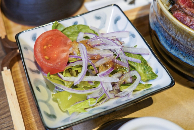 すべてのメニューに、サラダ、あおさの味噌汁、出汁、薬味、二十日大根の梅酢漬けが付いています。ご紹介していきます。