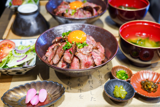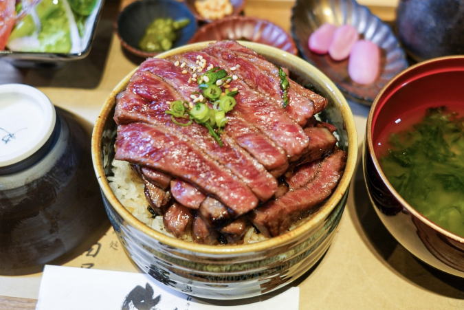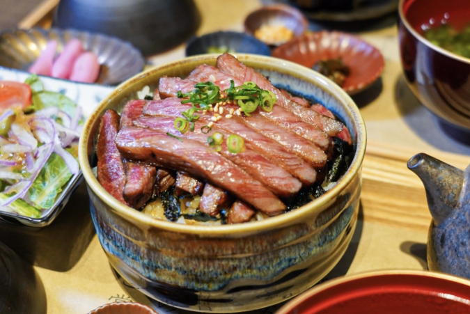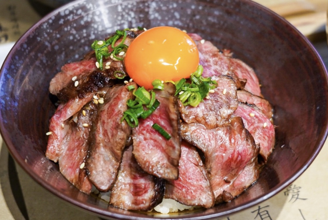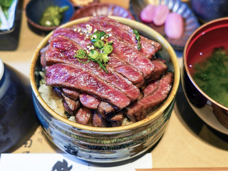 やわらかく、ジューシーな肉肉しさを堪能できるステーキ丼。一度食べると忘れられない、記憶に残るおいしさです。