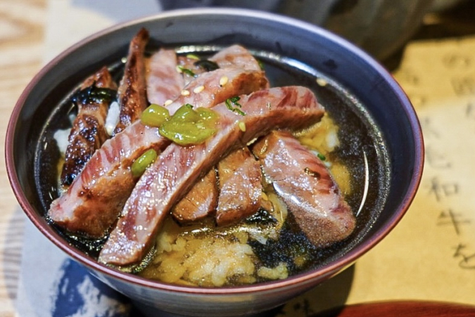 最後は出汁をかけていただきます。奥深い味わいのあごだしに肉の旨みが溶け出し、最後のひと口まで感動のおいしさを味わえますよ。