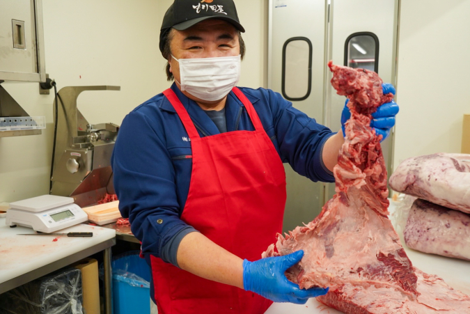 店内ではガラス越しに、スタッフがお肉をブロックごとにわける柵取りをしている様子を見ることもできます。