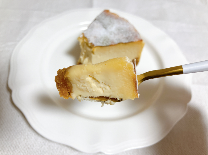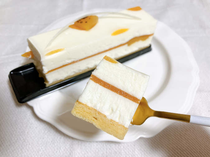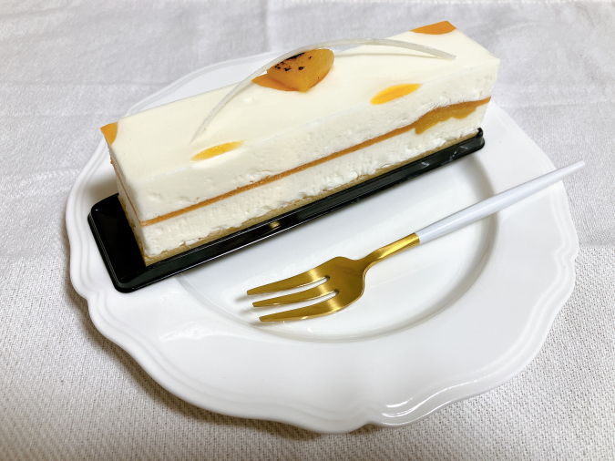 間に果実入りのアプリコットジュレがサンドされていて、レアチーズとよく合います。トッピングのホワイトチョコも良いアクセントになっていました。