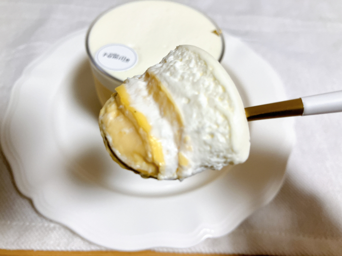 上のクリームは軽やかな口当たりでクリーミー。程よい甘さのプリンとマッチして、とってもおいしかったです。ここに来たらぜひ買ってほしい、おすすめの一品です。