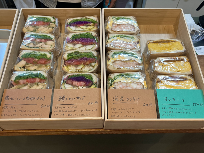 私が訪れた『じゅういちくみ(裏)』に、『名もなきサンドイッチ屋』は定期的に出店されていて、テイクアウトはもちろん、イートインでゆっくり過ごすこともできますよ。