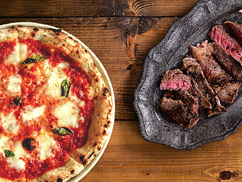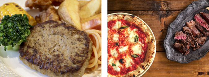 煮込みハンバーグやチキンマカロニグラタンなどのお子様メニューをはじめ、専用の窯で作る焼きたてピッツァや本格鉄板焼きの牛ステーキなど、豪華なメニューがラインナップされています。