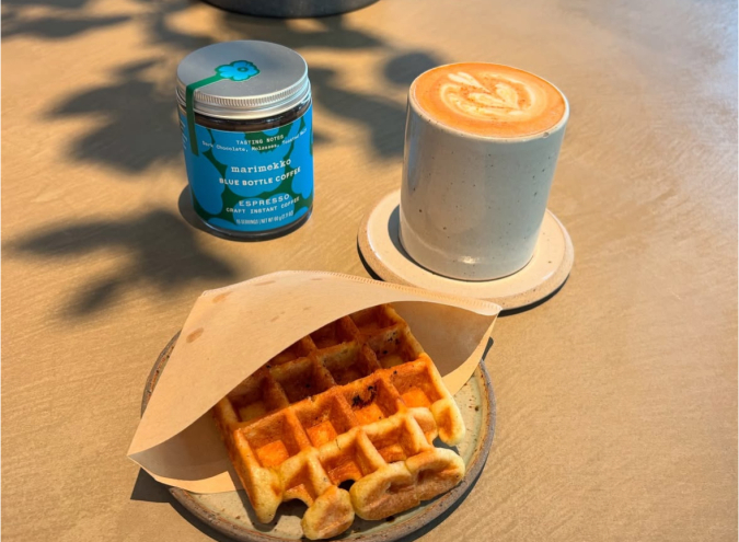 「ブルーボトルコーヒー 福岡天神カフェ」×「marimekko(マリメッコ)」コラボ マリメッコラテ リエージュワッフル