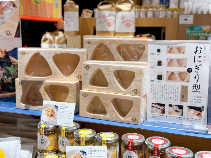 中でもユニークだったのが『おにぎり型』(小2,200円、大2,530円、特大3,300円)。ふんわりおにぎりを簡単に作れるひのきの型です。この型で作るおにぎりは、ヒノキの香りがほんのりとして、味も見た目も格別なんだとか。
