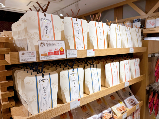 瀬戸内海産の自慢の鯛を贅沢に使った大人気商品『炊き込みごはんの素 鯛めし 2合炊き用』(1,566円)や写真の『雲丹めしの素』(2,592円)をはじめとした、『AKOMEYA TOKYO』オリジナル商品が福岡で気軽に買えるようになったのがうれしい……!