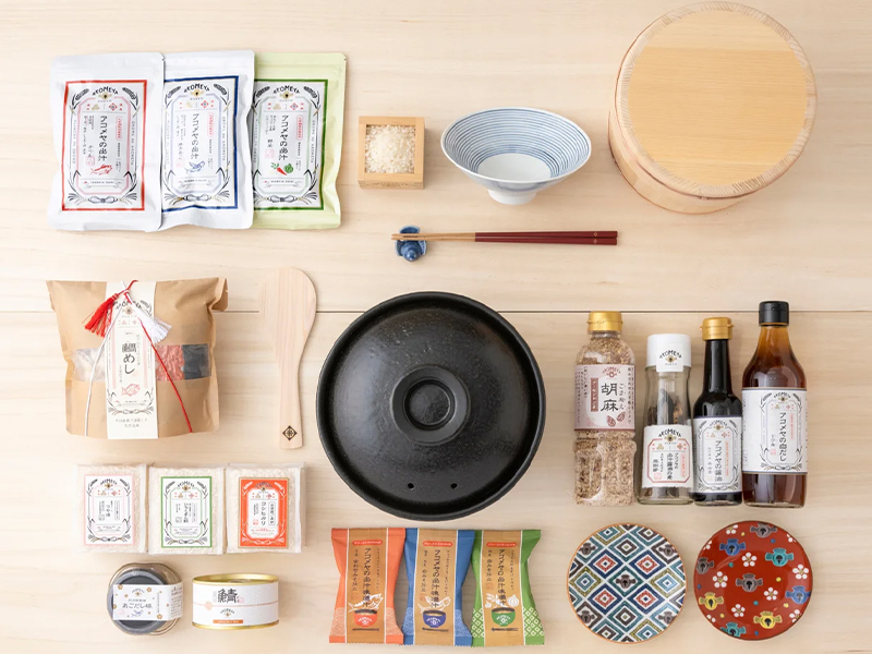 失敗知らずで評判の『有田焼 黒釉 ごはん土鍋 3合』(22,000円)、お米をおいしく保存できる『木曽さわらおひつ 5合』(26,400円)など、オリジナル商品も注目です。